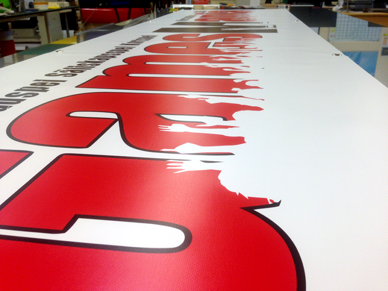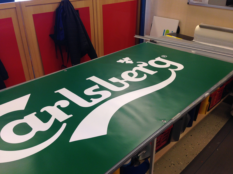 Vi printar digitalt på en slitstark och väderbeständig pvc-väv avsedd för utomhusbruk.